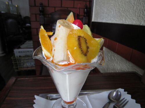 カフェ グレコでフルーツパフェです(≧▽≦) 高松駅から20分程商店街を歩きます、めちゃ大きな商店街ですわ、なぜか兵庫街 でっ、カフェ グレコさん お邪魔します~ 端の席へ では~フルーツパフェをお願いします しばし~待ちます 店内けっこうレトロです・・…