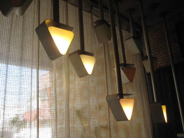 もう、創業60年~当時としたらめちゃお洒落なデザインやった事でしょうシャンデリアは中央に1個ですが実は3個あったそう、手前は壊れて外されました以前は奥にもう一部屋有ったそうでそこにもシャンデリアが有りました